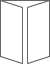 Gate Fold: Type of folding which will result in a tri-panel piece with a portion of the right side folded to the left and a portion of the left side folded to the right, opening up to the “inside” of the piece, as if two gates were opened.